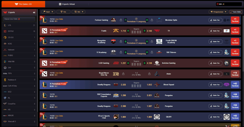 IM eSports adalah tempat taruhan olahraga elektronik yang di kembangkan oleh sekelompok permain olahraga elektronik senior. tidak hanya memiliki support teknis yang terbaik, juga memiliki tampilan visual yang mengagumkan dan pengalaman pengguna yang terbaik. Oleh karena itu, tempat taruhan permainan elektronik IM memungkinan anda untuk belajar dan menaruh taruhan dengan mudah hanya dalam satu tampilan.